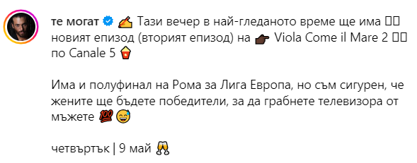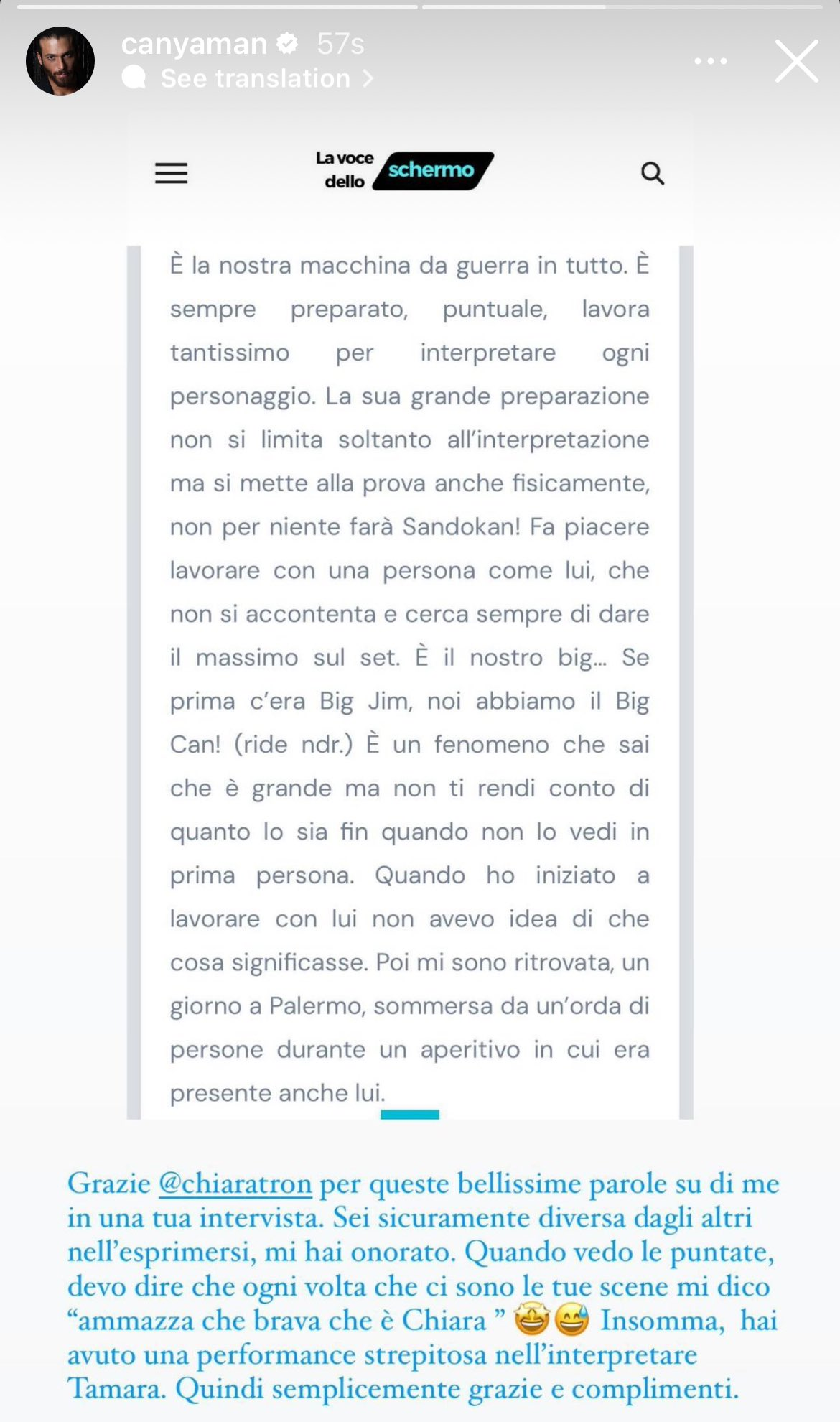 "Благодаря ти @/chiaratron за тези красиви думи за мен във твоето интервю.
