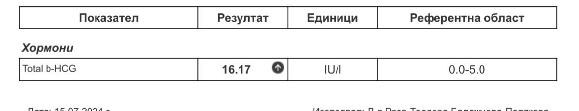 И аз съм с питане. Последен цикъл на 18.06, овулацията малко закъсня беше на 7-8.07. Направих кръвен тест на 16.07, когато трябваше да ми дойде и показа 0.200. Знам, че това е категорично отрицателен резултат, но има ли дори минимален шанс, да съм го направила твърде рано?