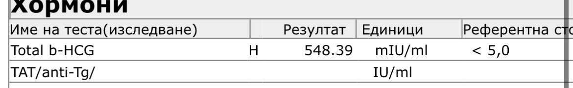 Чачи пусни втори кръвен тест след 48ч . В междинната зона е сега  .
