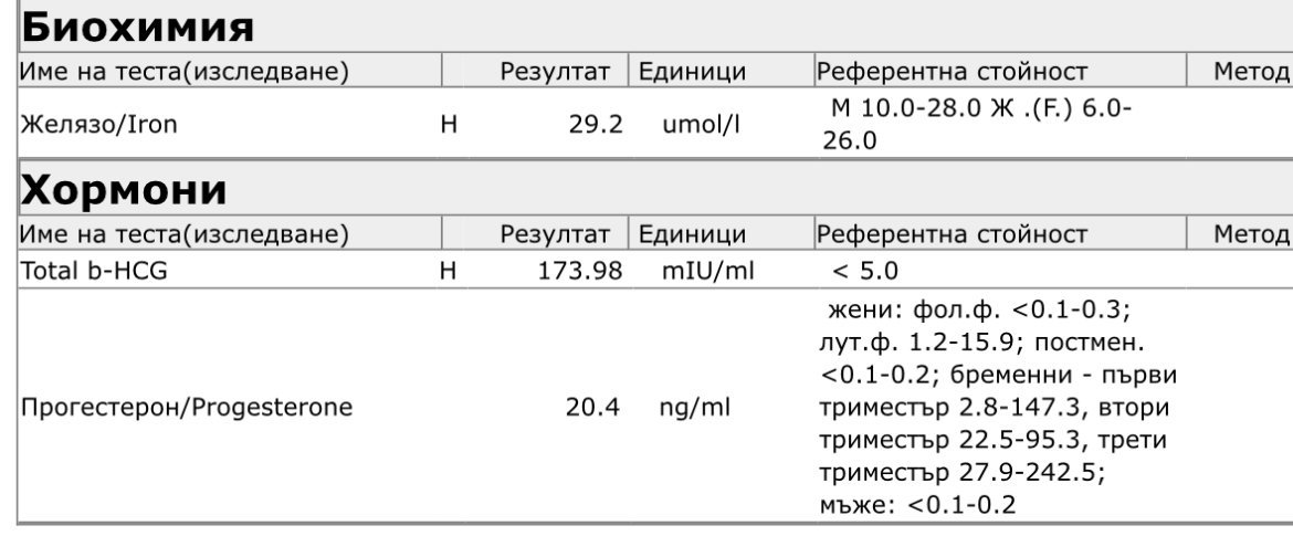 Трябваше да ми дойде на 14.08, на 15.08 се появиха 2 чертички на уринен тест( на 14 нямаше никакви чертички).  това са стойностите от днес сутринта.