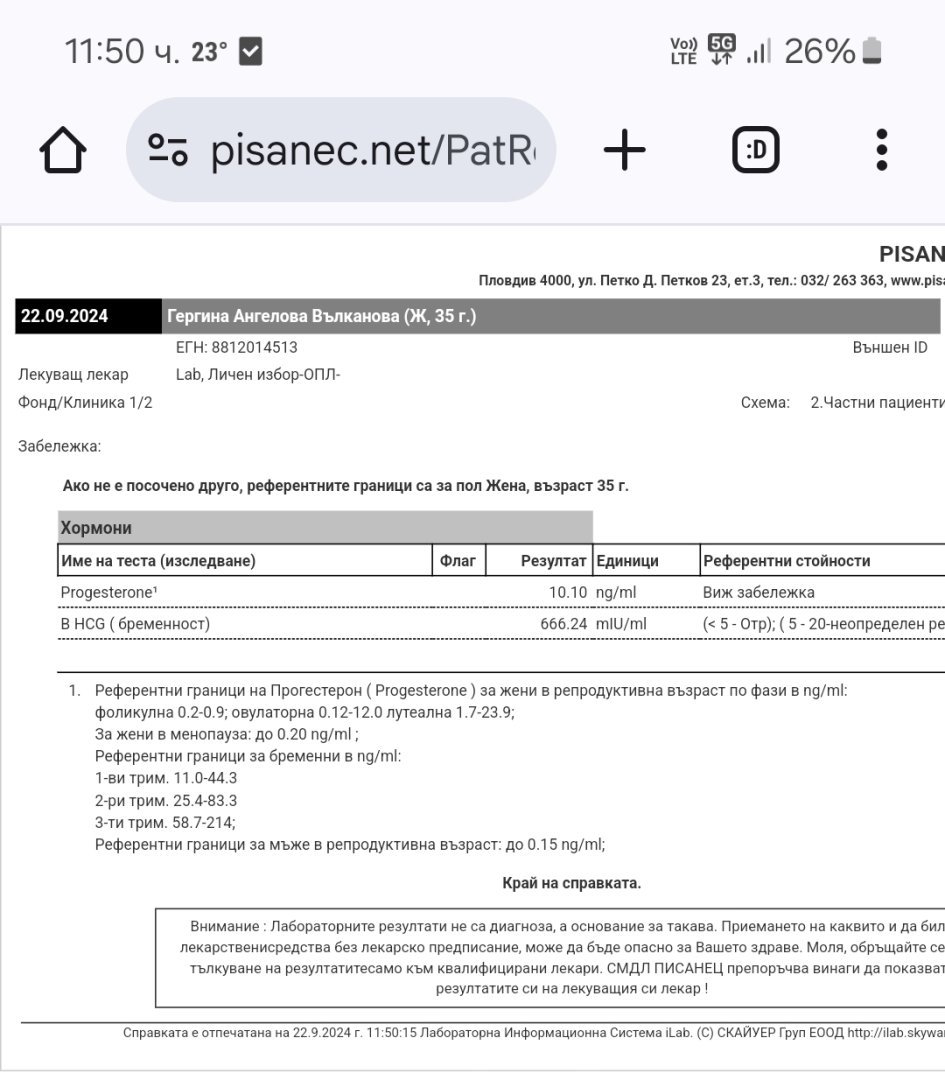 Какви са нормалните стойности на бета ЧХГ и прогестерона по време на бременност?