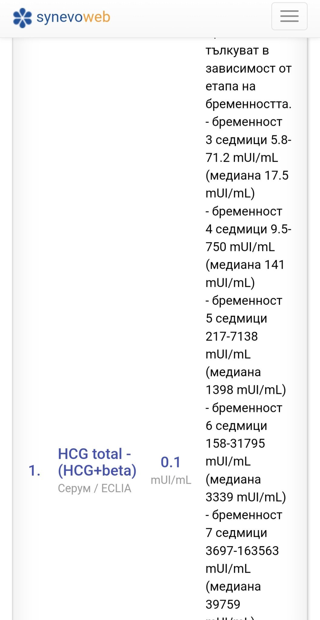 На коя седмица отговаря стойността на бета ЧХГ от 4142?