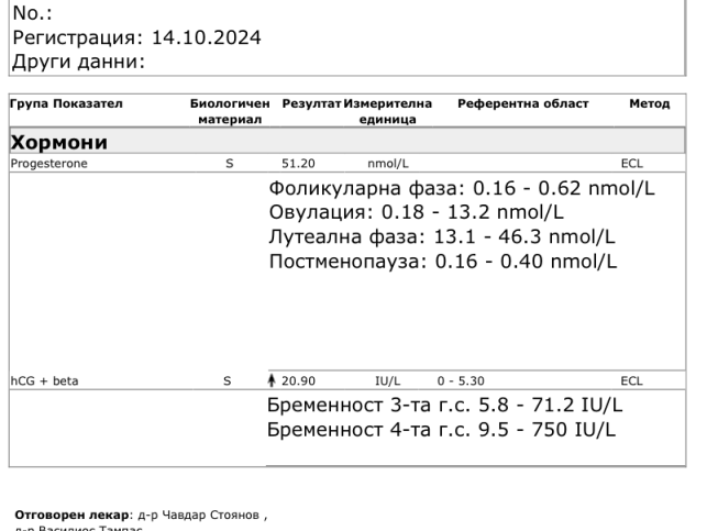 Днес ми е 14 ден от овулацията. Пуснах кръвни изследвания. Как ви се струват ?