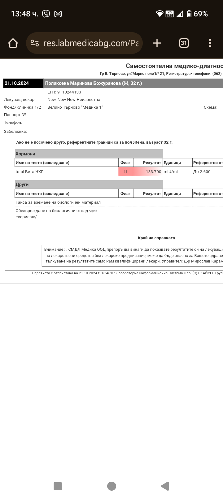Аз бих направила 1-2 теста на други марки, но при това ЧХГ.. дано е лабораторна грешка.