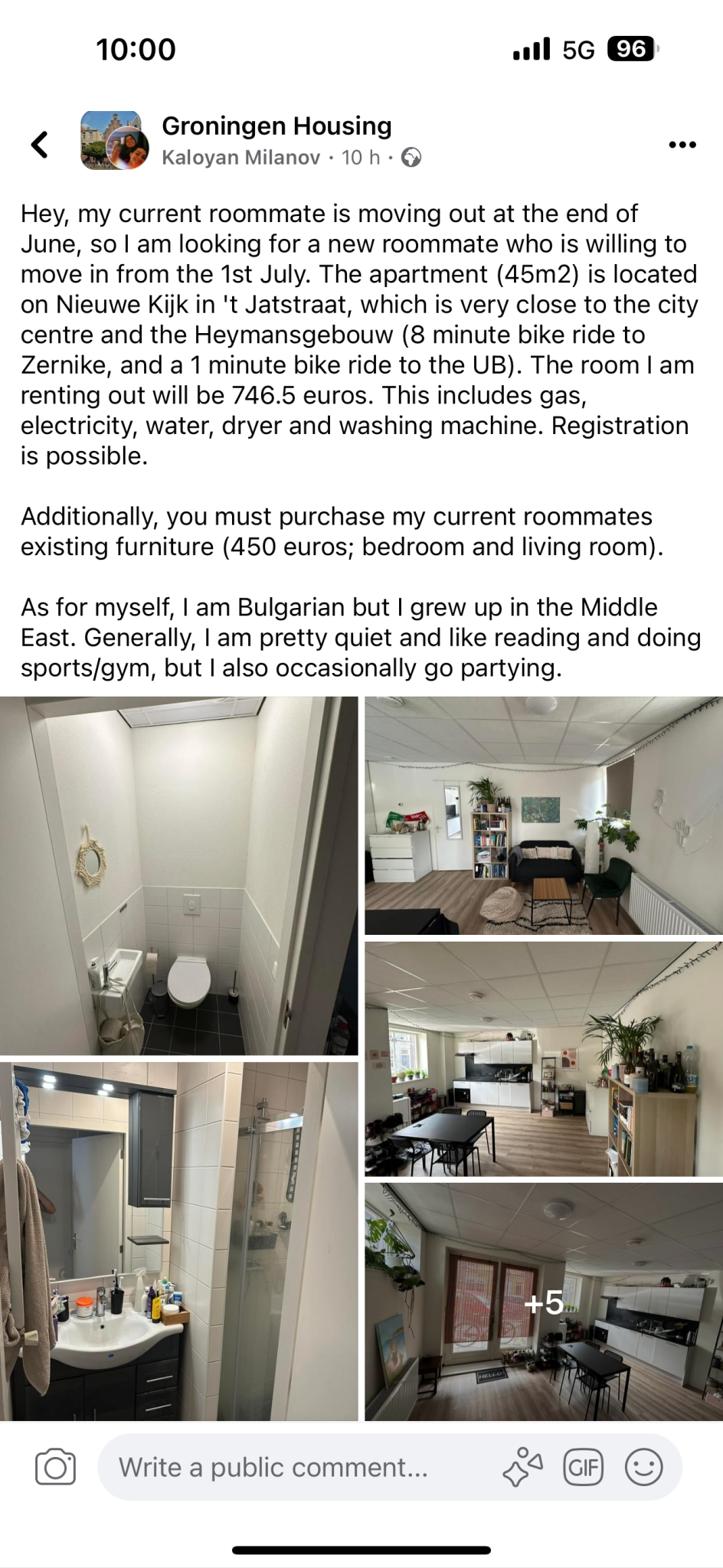 Излезе потенциална възможност за наемане на жилище в Амстердам от двама (не е гарантирано и дано излезе истина). Тък като не се познаваме с никоя от вас лично, а само задочно, пиша тук. Цената не е ниска. Ако има желаеща майка/баща, ще се радвам да ми пише.