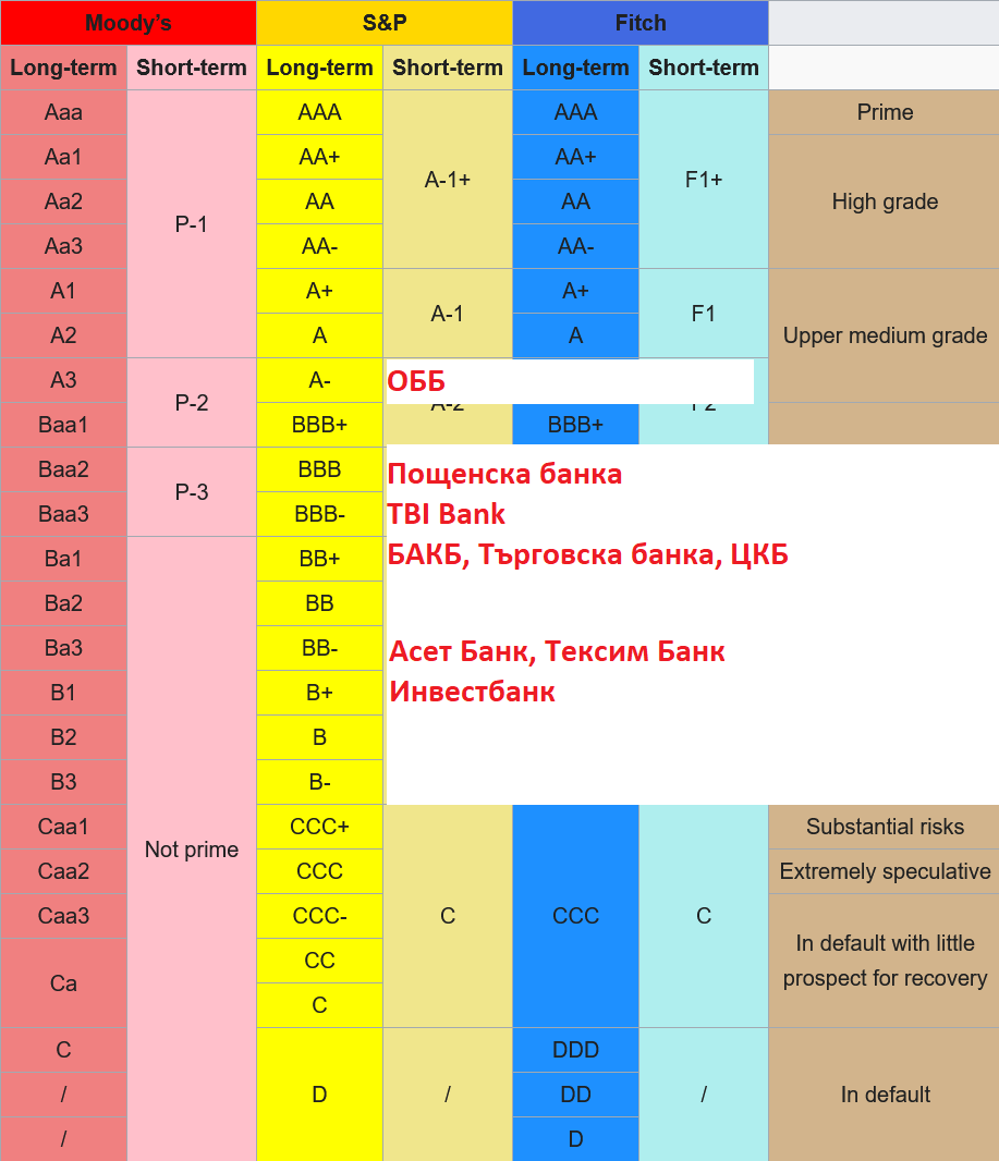 Не всички банки са си платили да им бъде изготвен кредитен рейтинг.