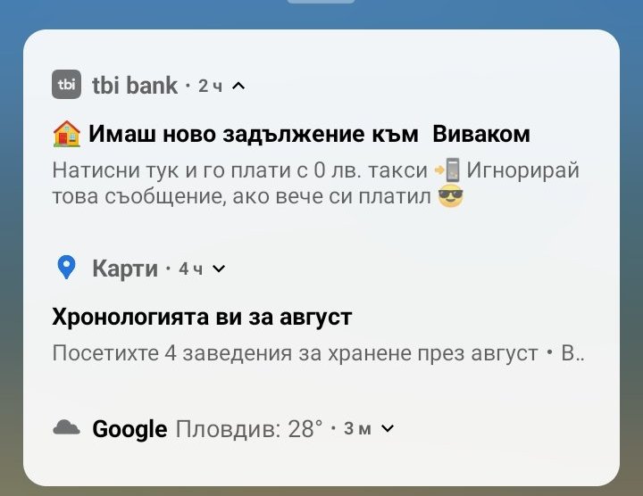 П.П. получих днес известие за сметка за пръв път откакто има възможност за такива известия. Вчера си ъпдейтнах приложението до най-новото - 27