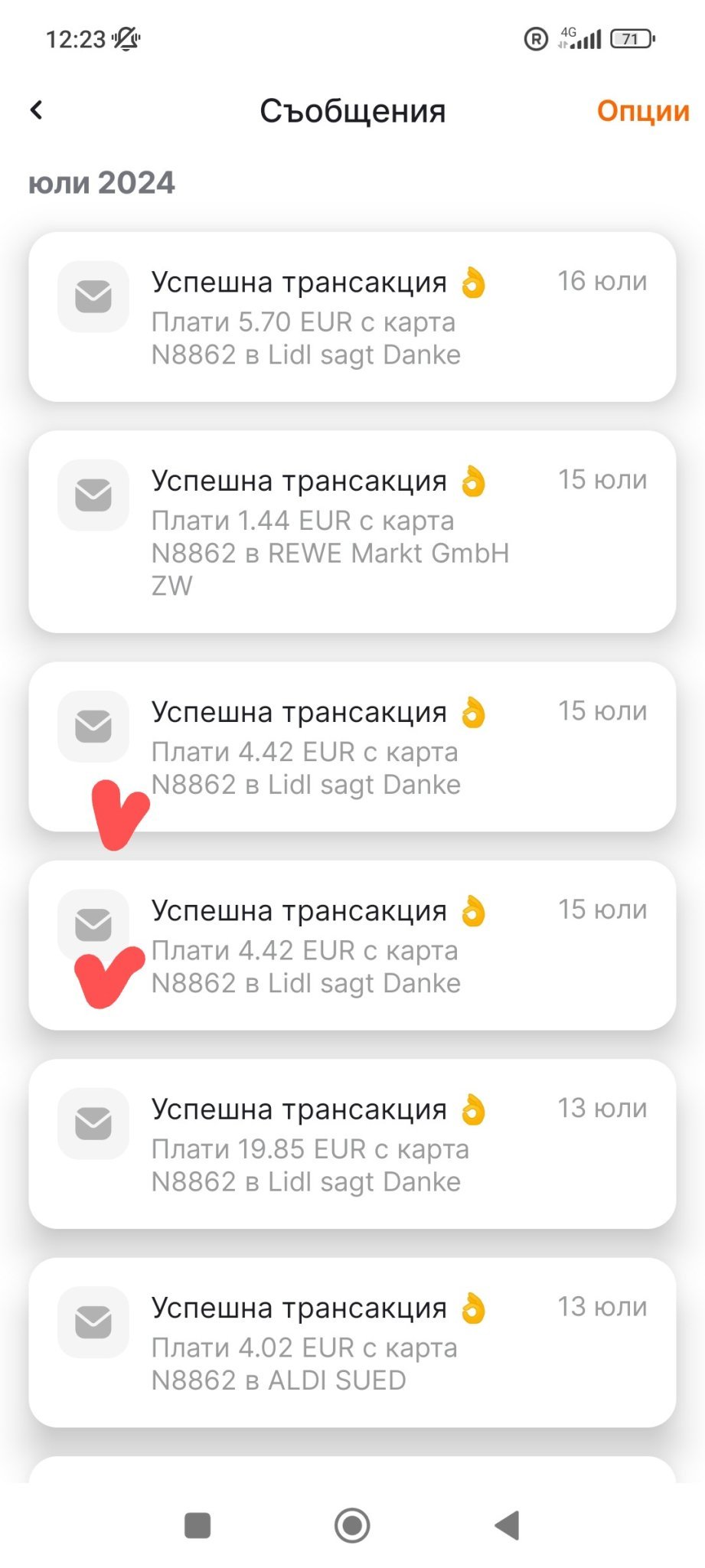 Едно плащане ми идва дублирано в съобщенията, но не и в трансакциите.