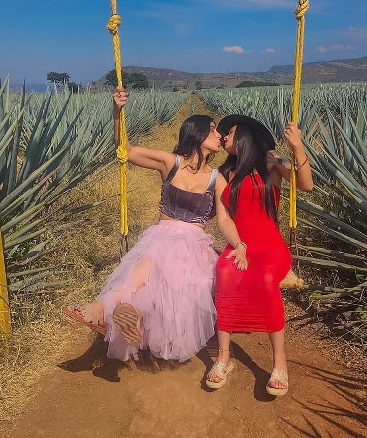 А тройката все едно са на карнавал. Тази розова поличка на Бренда/Ани вероятно е от Алиекспрес.