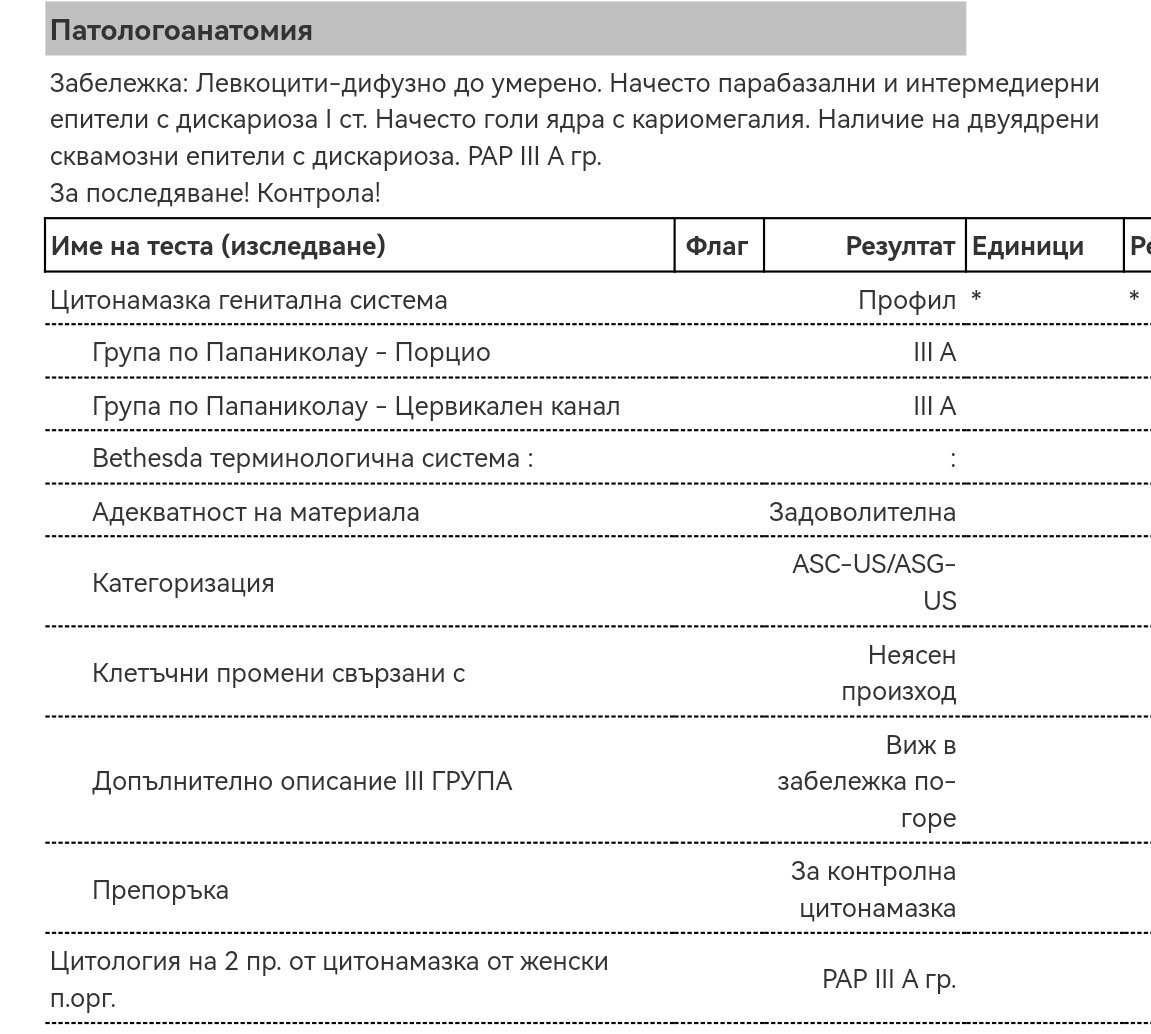 Здравейте! 6м. След раждане бях на преглед и днес резултатите от цитонамаската излязоха. Аз се изплаших ако може някой да ми помогне с разчитането, че като чета в интернет се стресисам повече. Пратих ги на лекарката тя ми каза да изчакаме и микробиологията. Аз докато чака 2 дни ще се побъркам. Възможно ли е да е нещо сериозно. И ако е нямаше ли да се види от всичките изследвания и прегледи през бременността?