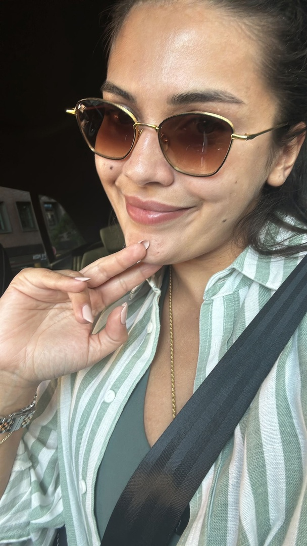 Тя си е променила прическата - има голям бретон на степени актуален в момента ,тип началото на 80-те ( поне така ми изглежда окато във филмите от тогава ) много и отива .Явно е при някакъв известен фризьор , излезе ми инста на салона с видеото , в което я подстригваше . Не само е хубава , но е и много лъчезарна и най вече естествена  . Не знам ще има ли нов проект , искам да я видя във филм ( сериал )