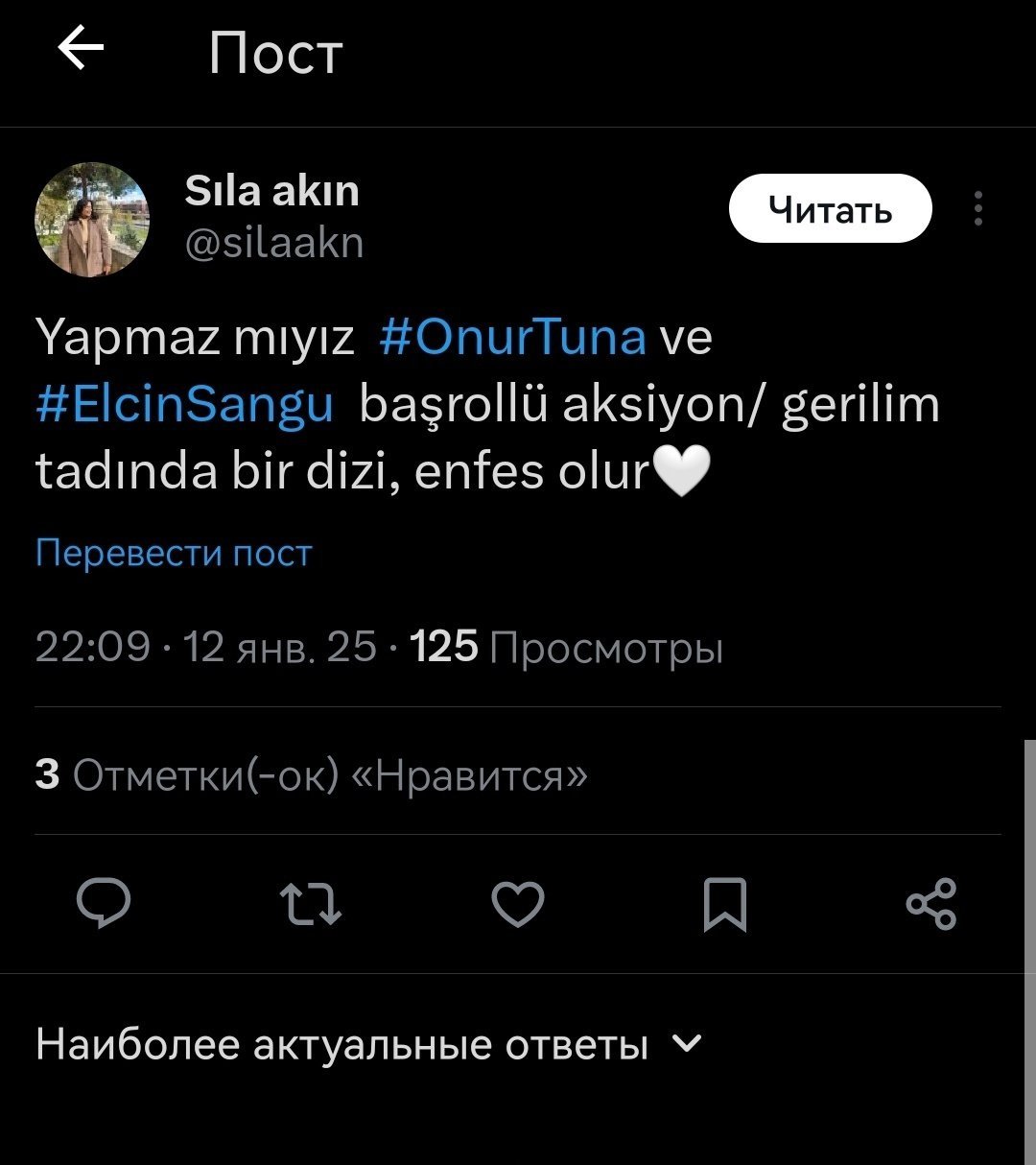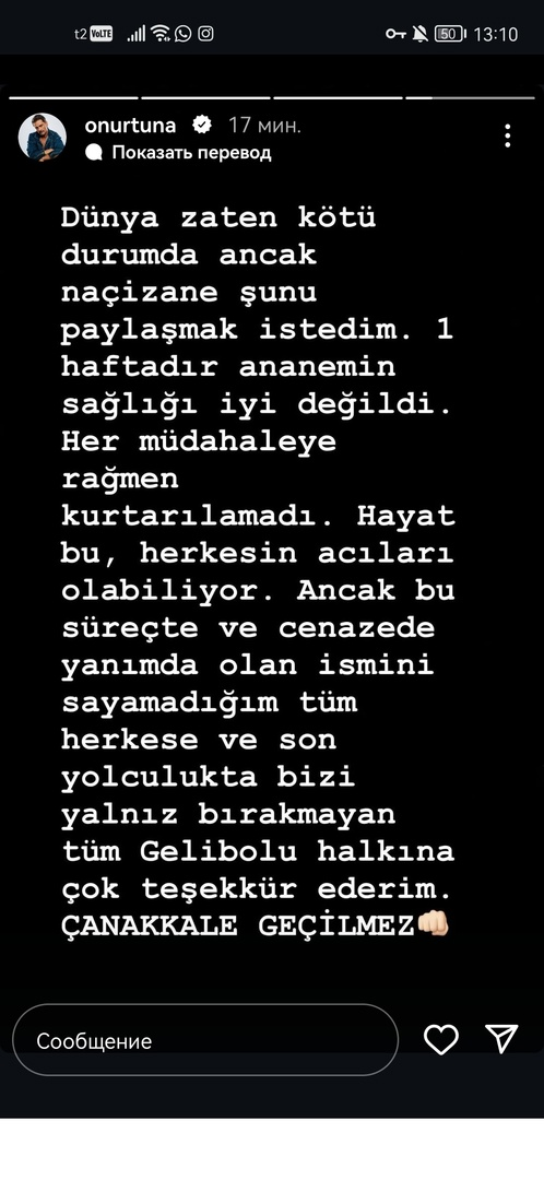 Онур Туна поделился этим твитом из-за сериала «Моя мать Анкара»?