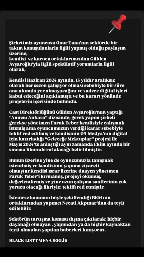 📌#ОнурТуна привлек внимание своим постом, пока продолжались дискуссии по вопросу монополизации в индустрии сериалов и фильмов. Туна: «Право трудящихся подобно аху угнетенных. Что нам до журнала? Как работник, работающий в этой отрасли 15 лет, я уверен в одном… Играть с хлебом, путать столы, делать то, что не принадлежит ему, и перестать глубоко думать и превратить эту профессию в витрину — это позор. Это было позорно!!» написал.