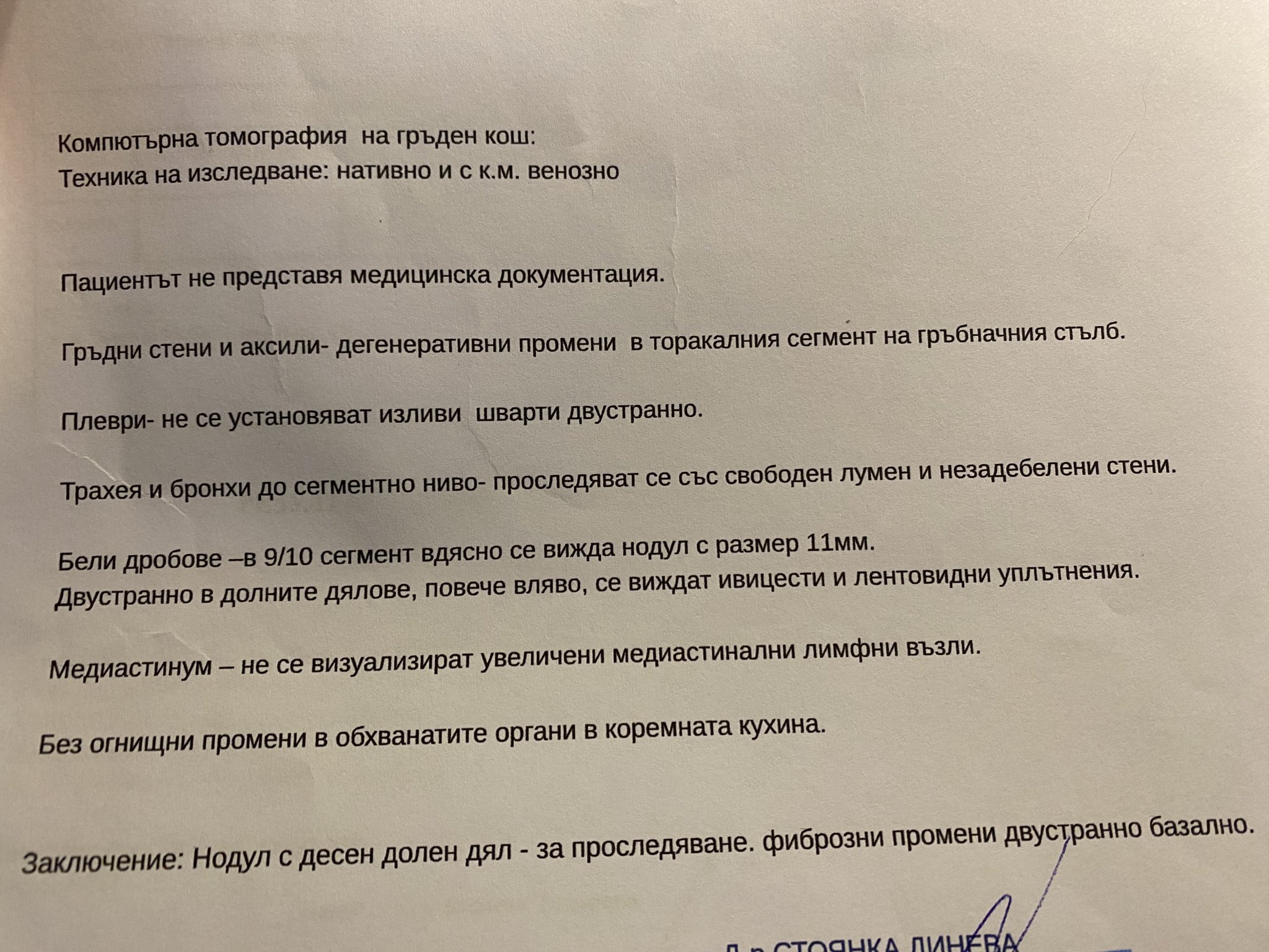 Възел с размер 11м в десния бял дроб, препоръчват да се следи