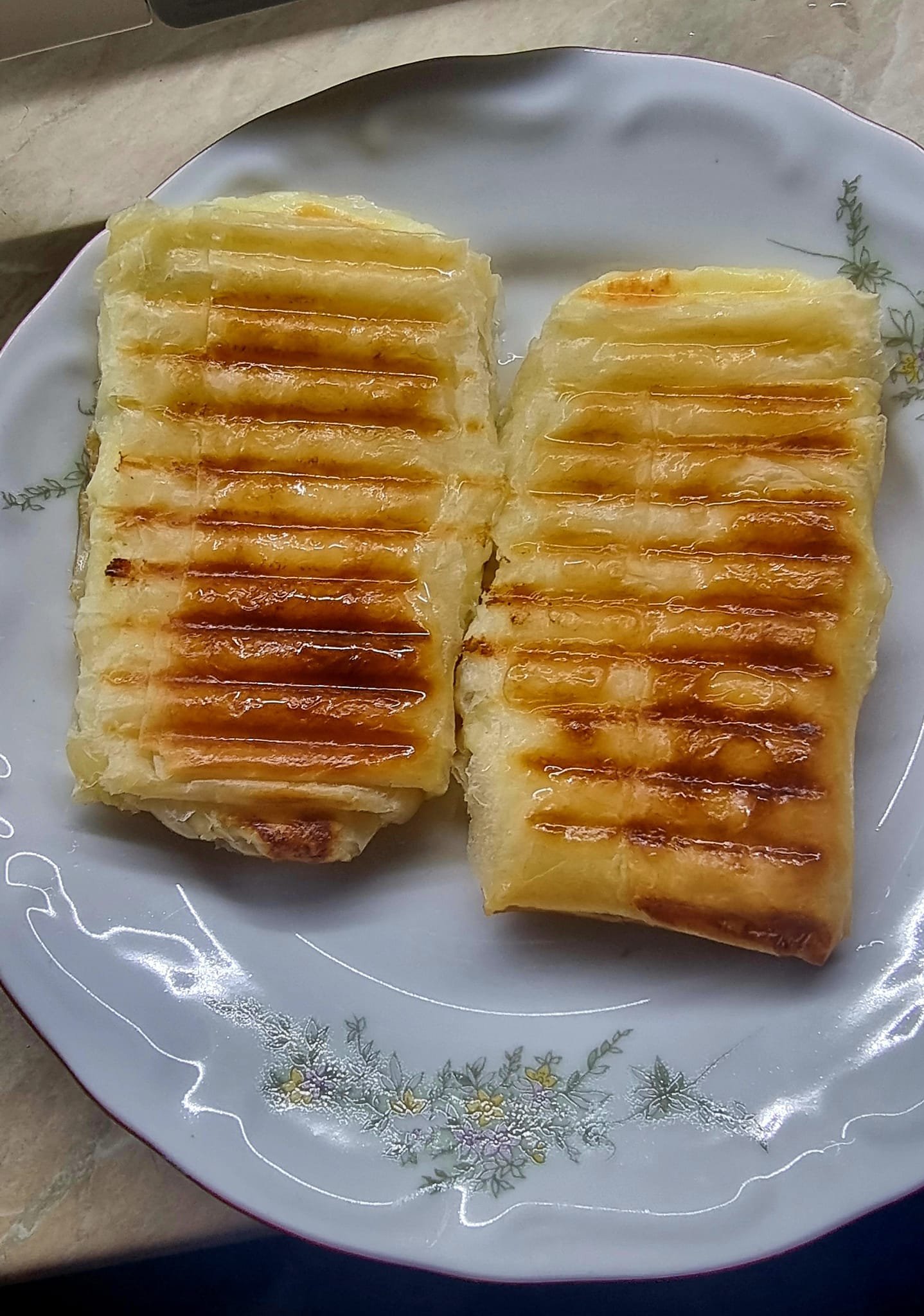 Вкъщи всеки си има неговата любима баница, и най-лесния начин е да правя малки банички на сандвич тостера, така всички са доволни Simple Smile