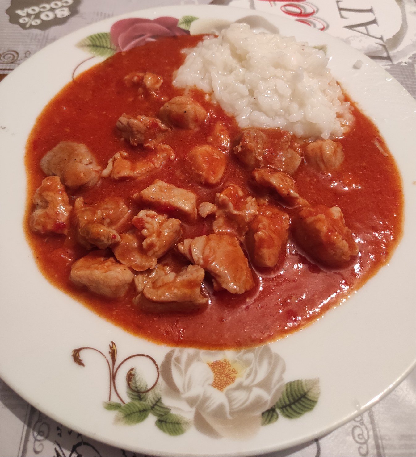Смес от китайска и турска кухня. Пиле по сечуански и булгур и фиде със зеленчуци