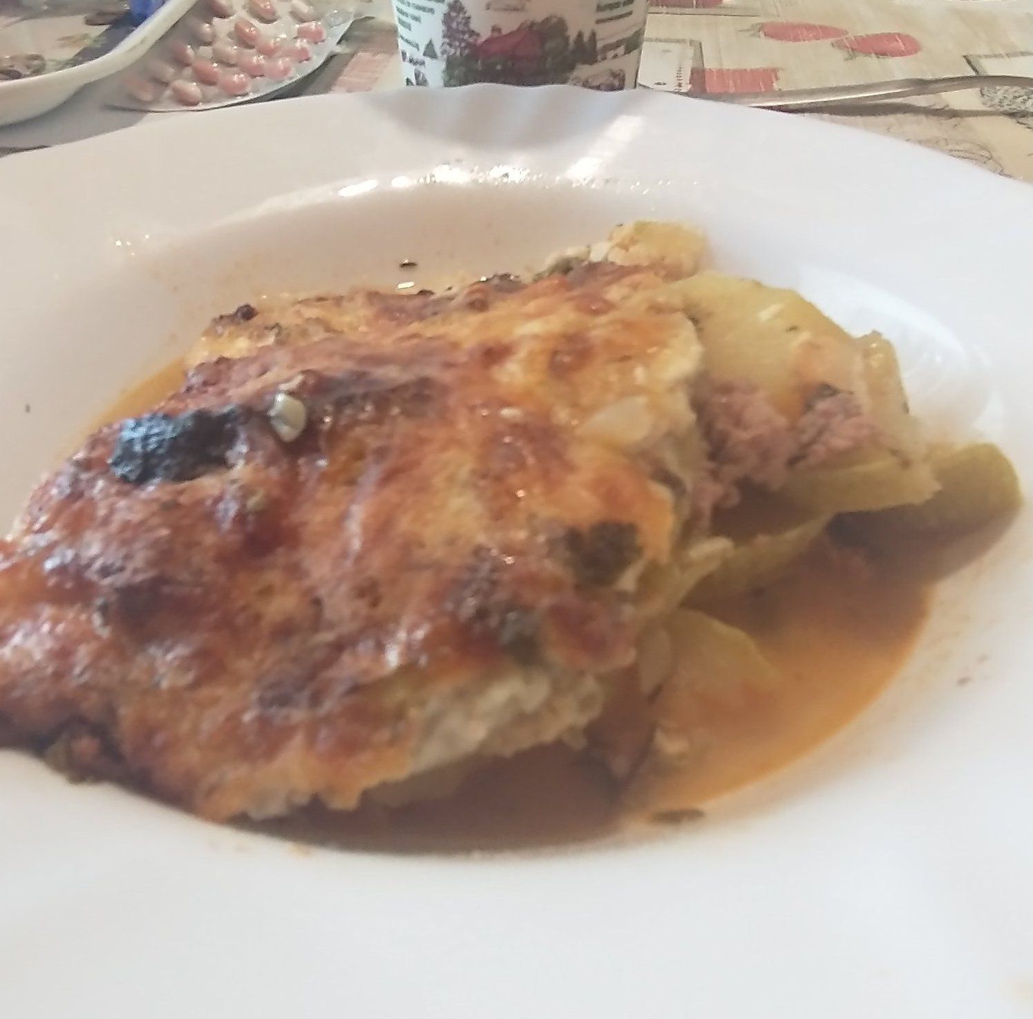 Мусака от тиквички, картофи и кайма