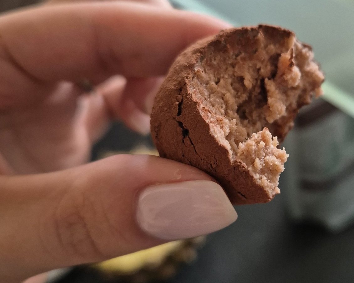 Бонбони с протеинов пудинг и кокосово брашно (оваляни в шоколад без захар/какао)