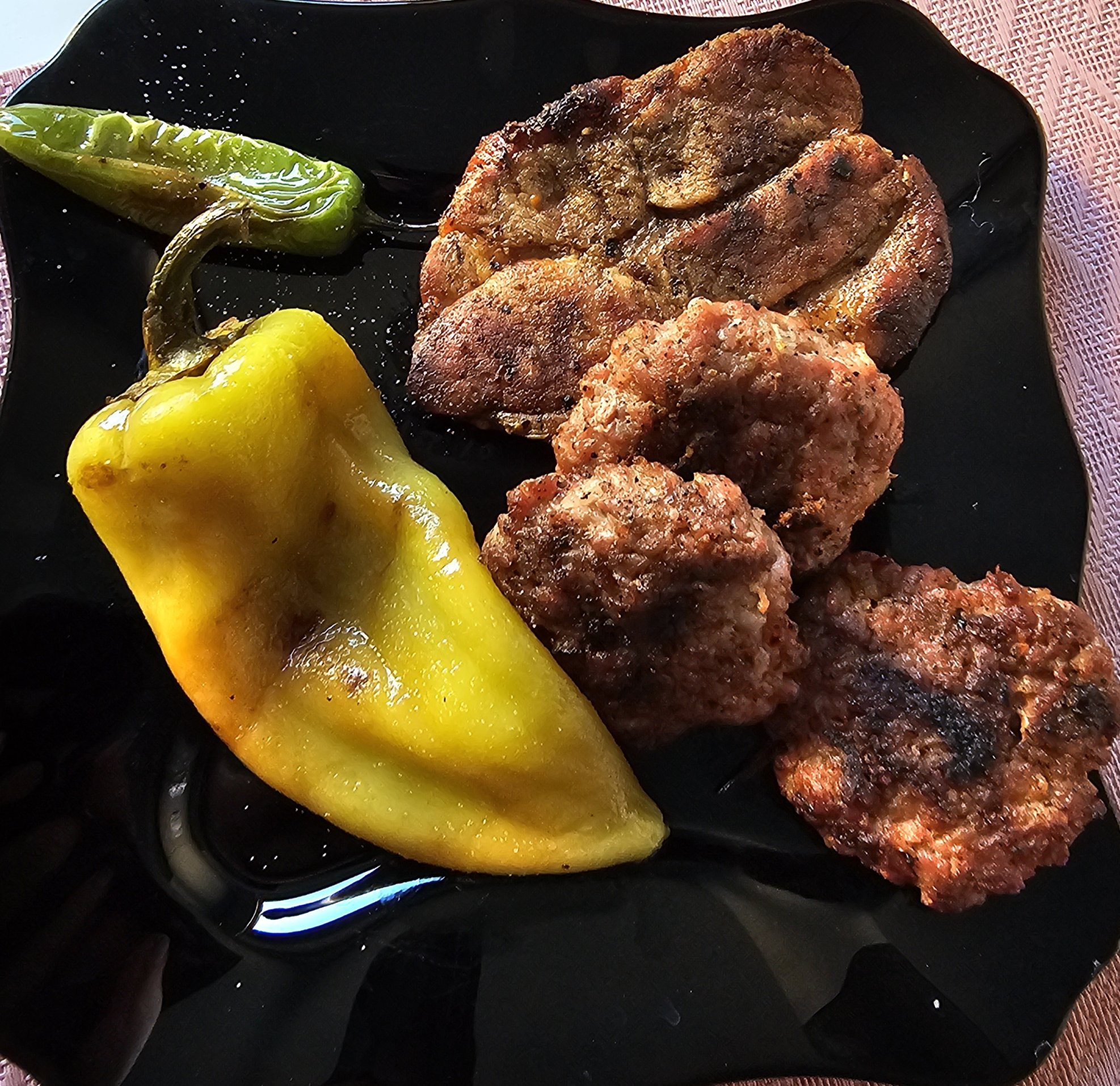 Вратни пържолки, кюфтенца и чушки на скара