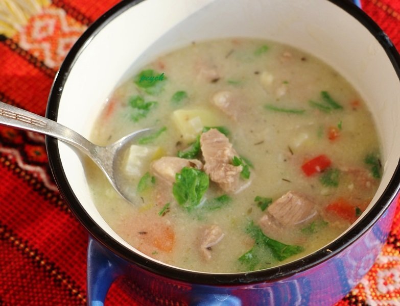 Равиоли с червен лук и рикота в сметанов сос с гъби и аспержи