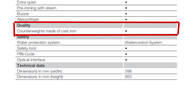 Миналата седмица и аз голям рисърч правих, за да установя, че WWI860 е с метален казан и противотежести от чугун. Намерих информацията в чужди сайтове за продажба на Миле, дори вече не помня къде.