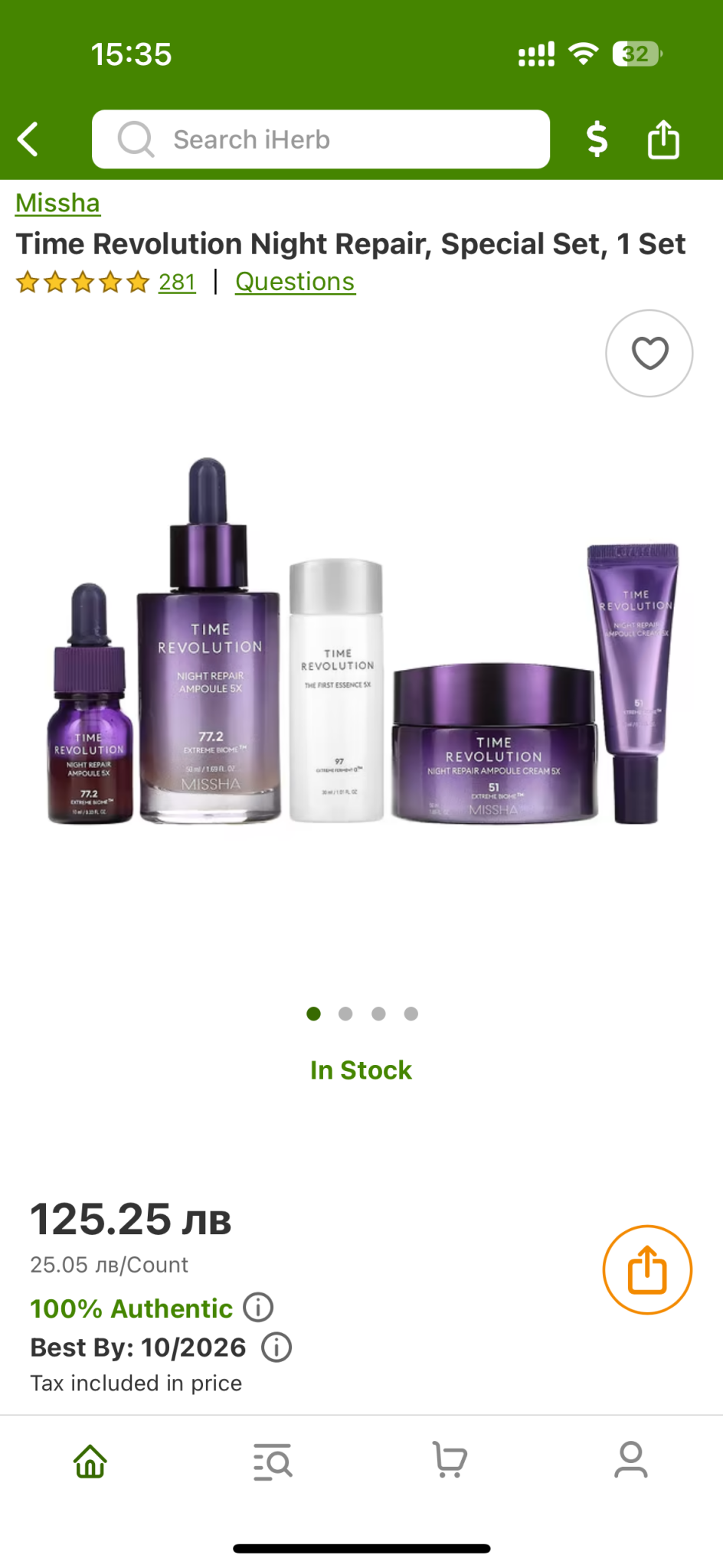 Само да кажа че сетовете на Миша в iherb са доста по-изгодни, а сега дори нямат отстъпка. Когато има намаление излизат по около 100 лв.Доставката е безплатна със спиди до адрес и отнема 7-8 дни. Time revolution серума ми е любим 😍 и аз препоръчвам