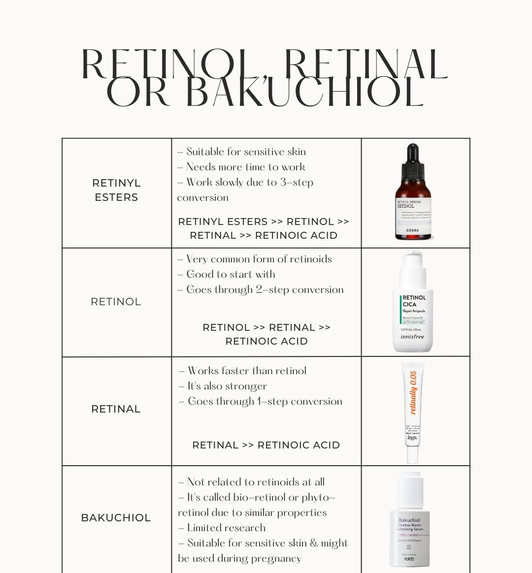 Вече има доста корейски подукти с ретинол / ретинал, но са с нищожен процент и честно казано не им обръщам внимание.