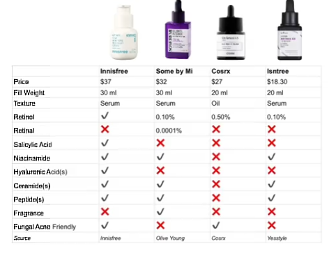 Ето едно видео, което не изчерпва всичко корейски ретиноли, но дава някаква представа, кой  от новите ретиноли, от тези които са включени в него за каква кожа е подходящ.