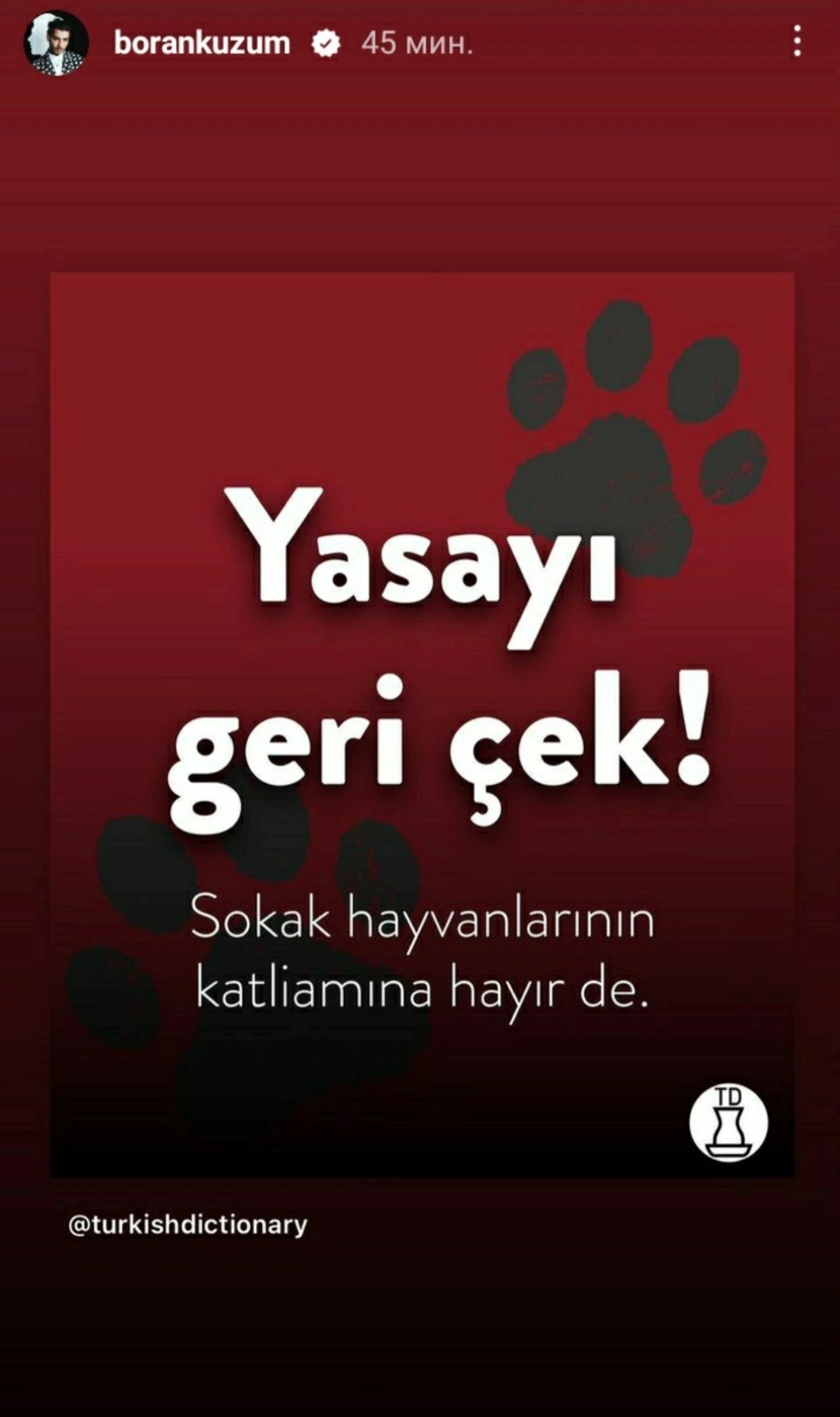 И Боран е призовал против закона за бездомните животни.