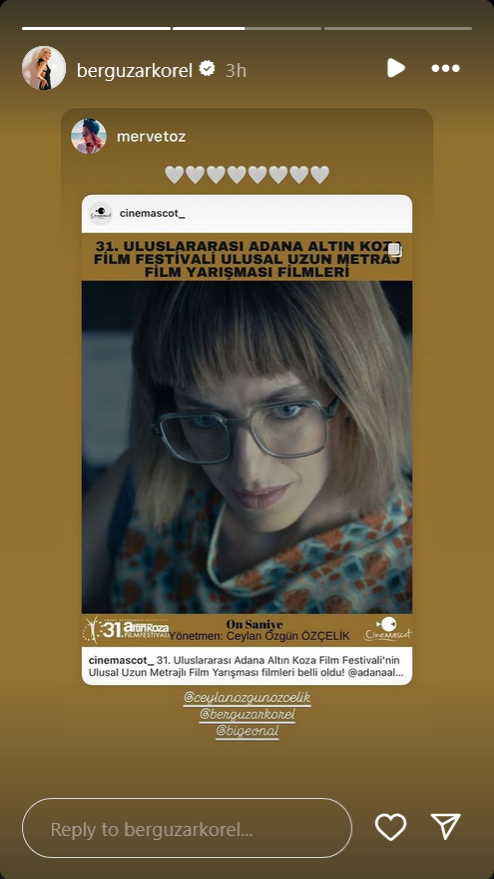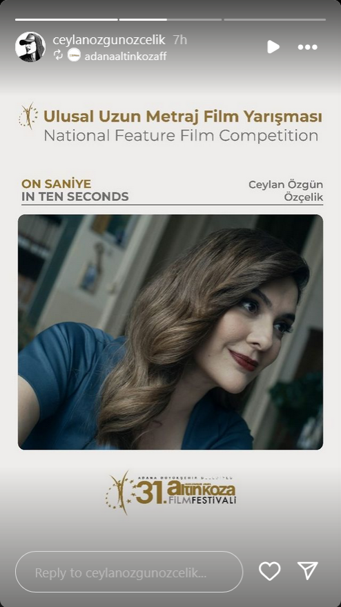 "10 секунди" прави своята национална премиера на филмовия фестивал Adana Altın Koza! Филмът, заснет изцяло в Частната гръцка гимназия Фенер, отразява битката на два сложни характера за психологическо превъзходство по напрегнат начин. Джейлан Йозгюн Йозчелик е режисьор на "10 секунди", с участието на бергузар Корел и Биге Йонал. Филмът, чийто сценарий е написан от Ерди Ъшък, е продуциран от Sky Films. Екипът на "10 секунди" се състои предимно от жени."