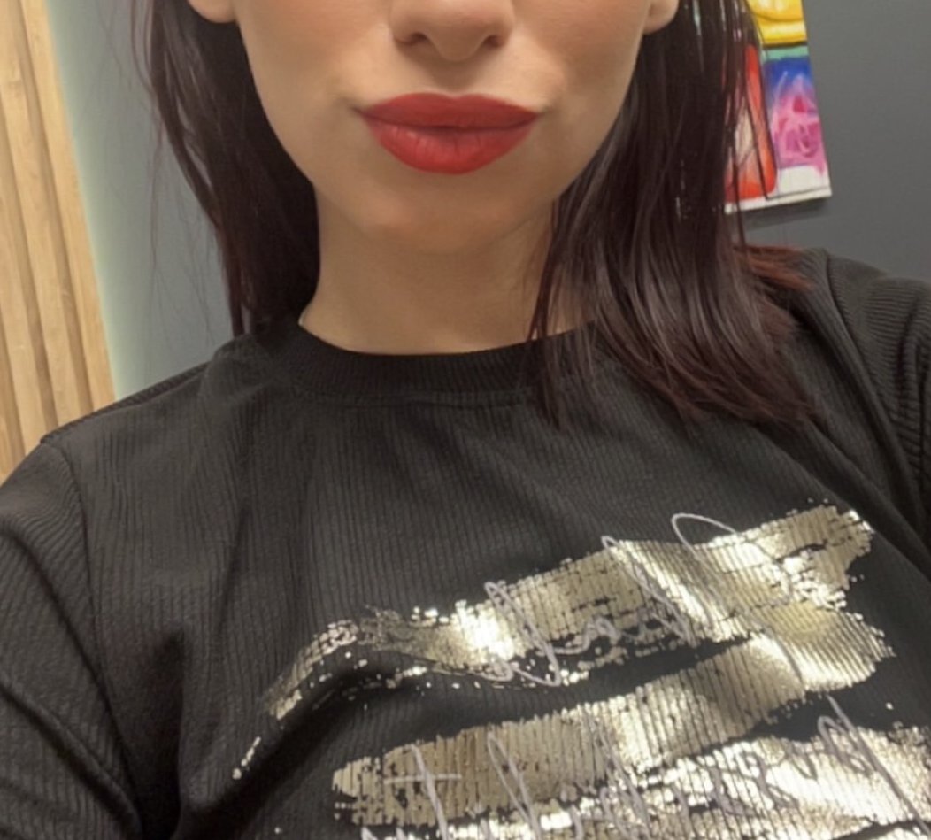 Не, не беше засъхнало още, пък и аз излязох без да искам от очертанията и на ръба изглеждаше лъскаво. Матови ми стоят и двете, просто трябва хубаво да изсъхнат преди да се допират устните, пие/хапва или целува.