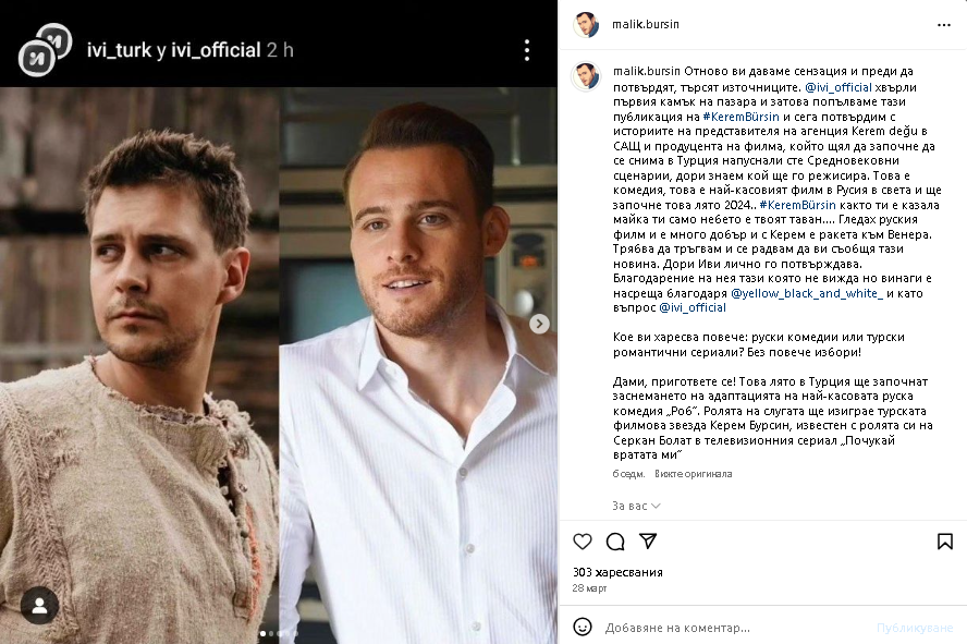 Въпреки че, за комедията, която ще е римейк на руската и ще участва Керем писаха поне месец преди да се спомене в Турция, а за общия проект на Ханде и Баръш повече от месец го коментират рускините, та може и да е истина.
