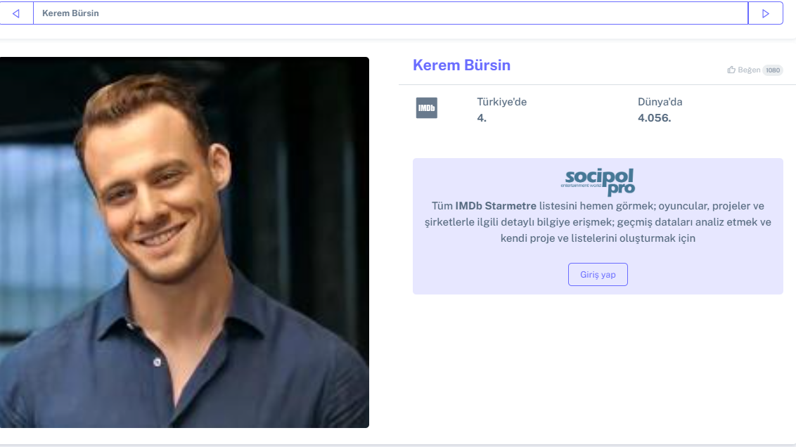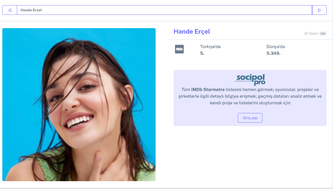 Според данните на IMDB Starmetre за седмицата, Керем е на 4-то място, а Ханде на 5-то Simple Smile