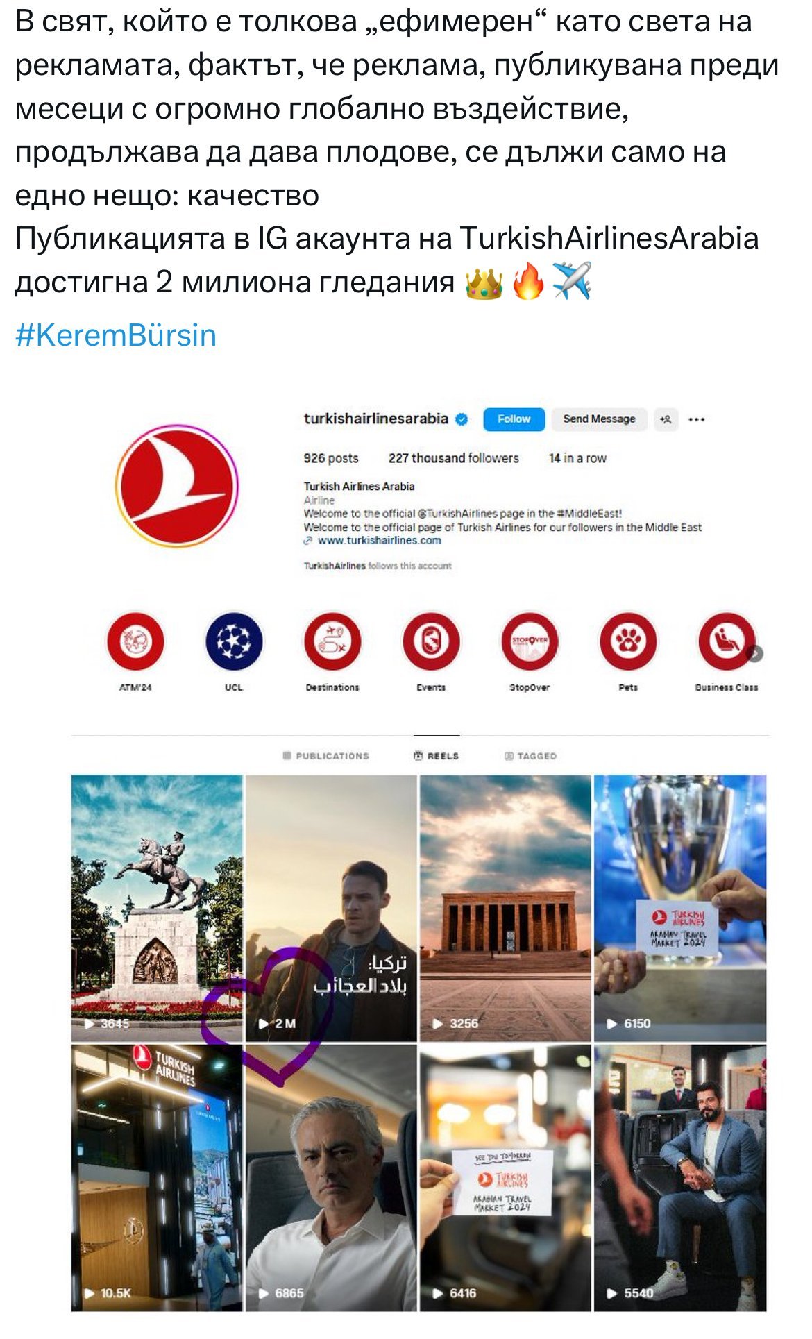 и разбира се рекламата за THY Turkish Airlines. Имаше чудесни, запомнящи се кадри!