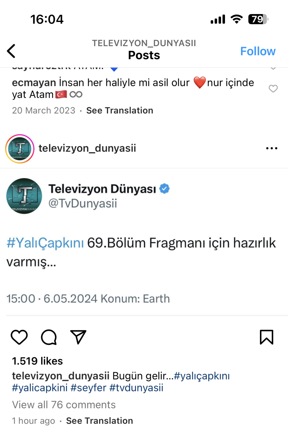 И аз съм доволна от фрага, хубаво преплетоха нещата, разбира се с изключение болестта на Сейро, но... Интересно ми е завръщането на Тарък, добър ли ще е, лош ли...разплата ли ще търси заради това че е бил в затвора...под голям въпрос ми е и ми е любопитен.