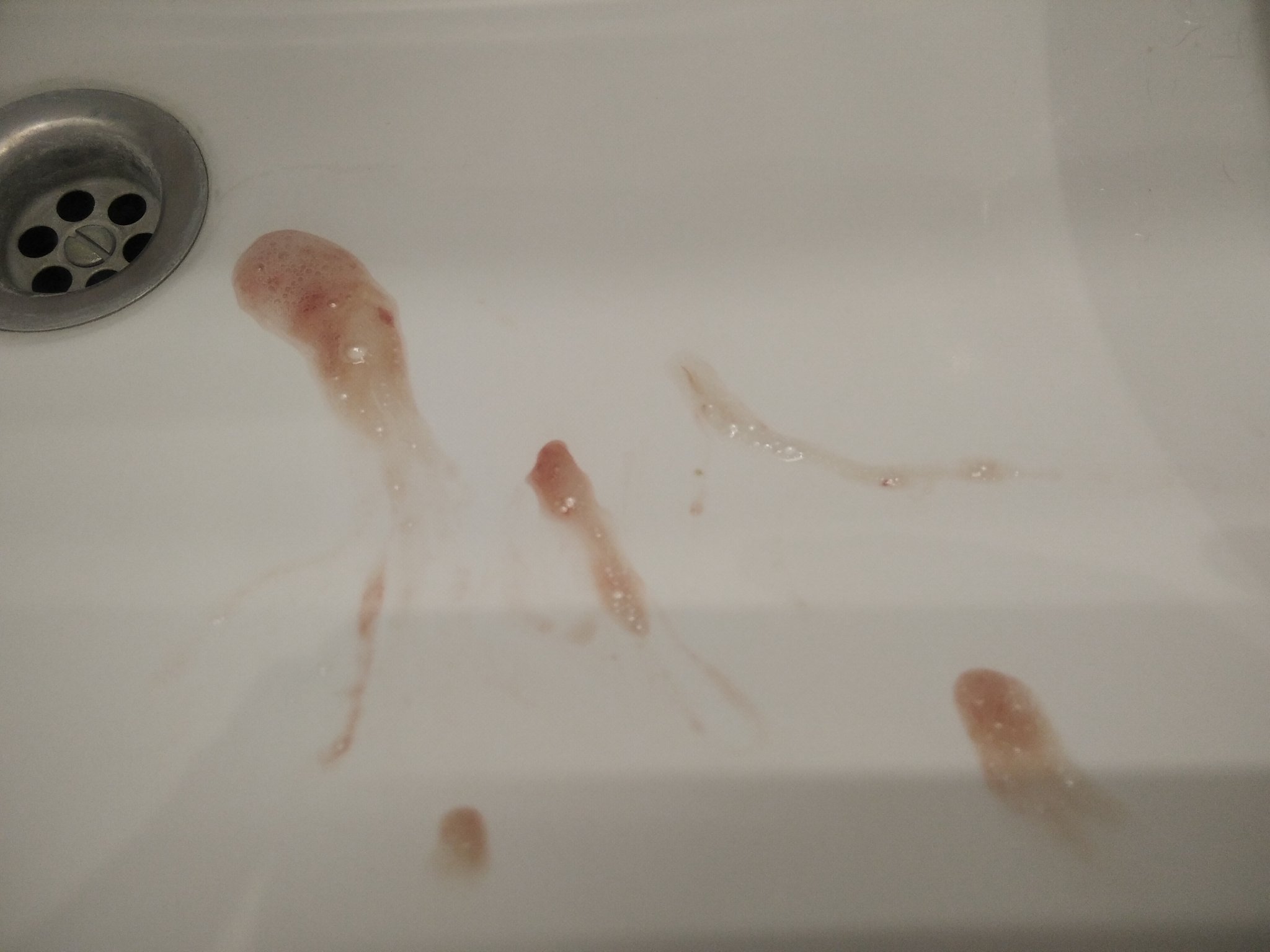 Извинявам се, че избутвам толкова стара тема, но от всички подобни, тази ми е най-близка сякаш. Бях с настинка, доста тежка, от преди нова година, като капилярите в носа ми бяха разранени, след това пак се започна с бистър сопол, но от три дни сутрин като стана, само сутрин, имам кафяво-кървава слюнка. Минава след като изплюя няколко пъти и си измия зъбите. През целия ден е прозрачна, нямам храчки, просто събирам слюнка в устата и излиза ето в този вид (не е за гнусливи хора, извинявам се):