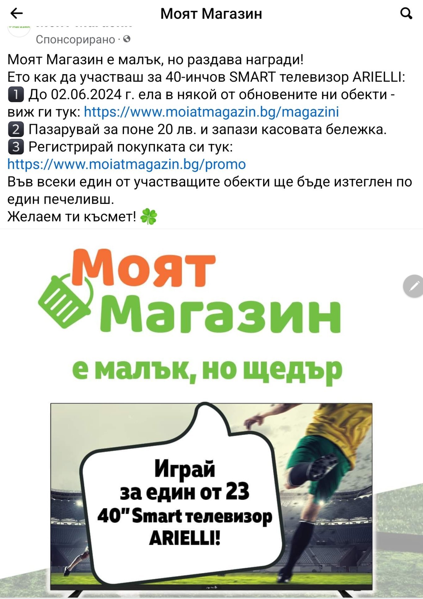 Една игра на Моят магазин за определени търговски обекти от веригата🍀🍀🍀