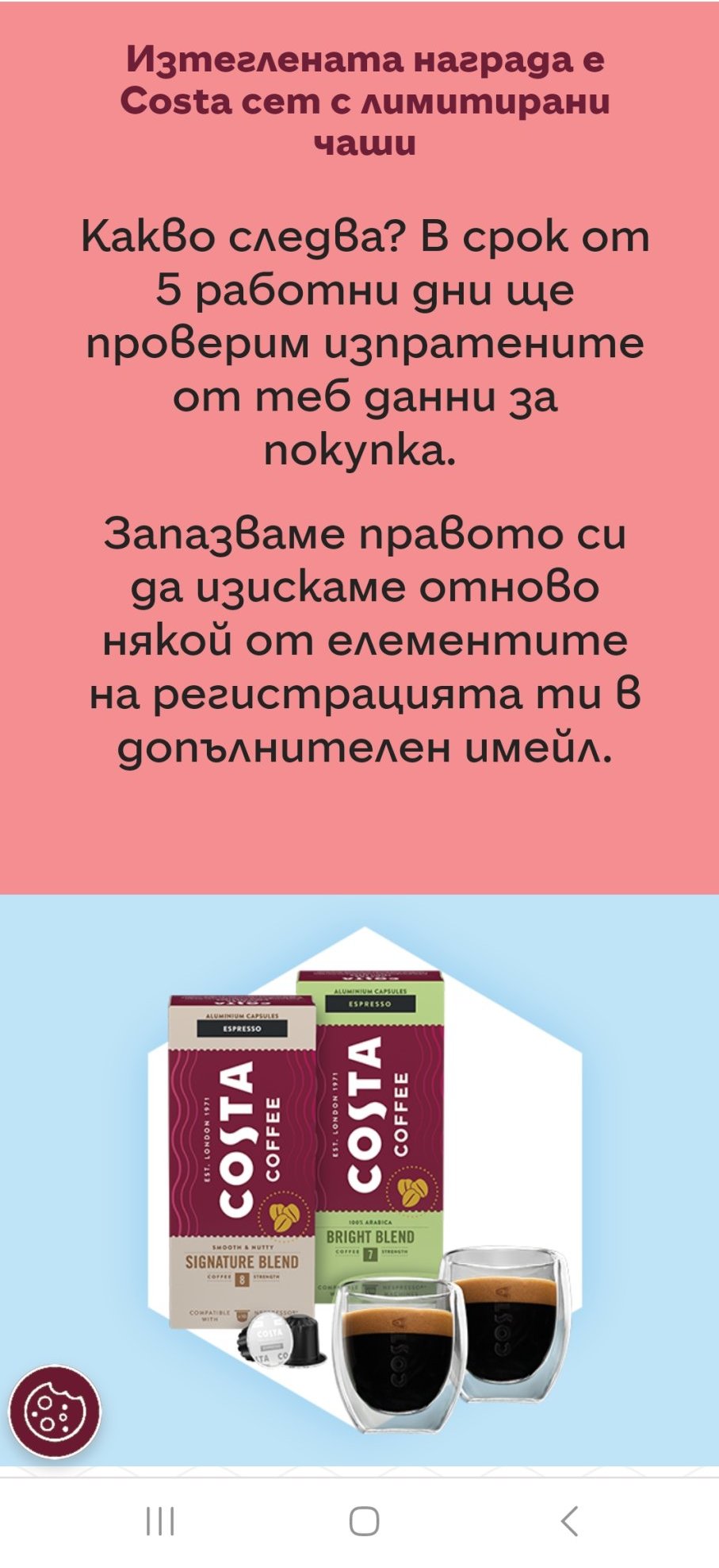 Ехааа, сет с чаши за мен, за първи път печеля от Коста кофе, а е любимо в нас !