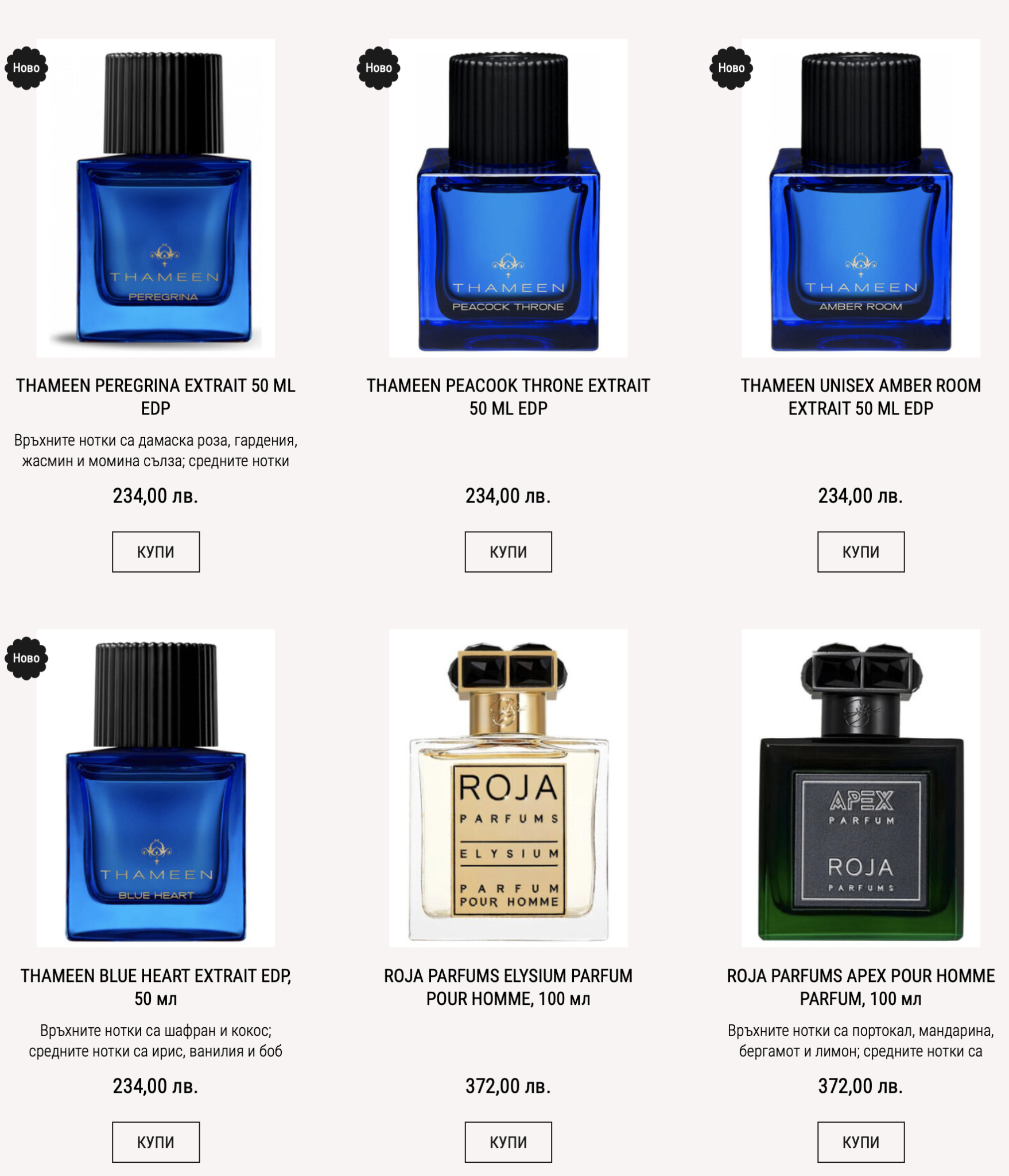 Участниците споделят мнения относно качеството на продуктите, предлагани от различни онлайн търговци, включително парфюми. Някои клиенти имат положителен опит с уебсайтове като ParfiMo и ParfiUm, докато други съобщават за проблеми с фалшиви продукти и лошо обслужване на клиентите. Освен това се обсъждат ценовите колебания, като се отбелязва увеличение на цените на парфюмите.