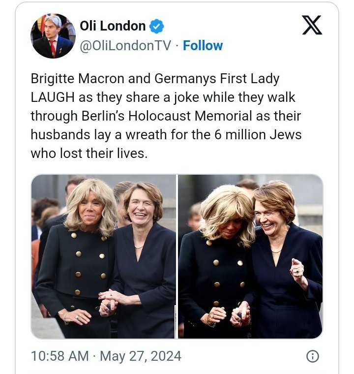 Бриджит Макрон и съпругата на Германският президент се кикотят при посещението на президентът на Франция и първата дама на мемориал на жертвите от Холокоста заедно с държавния глава на Германия Франк-Валтер Щайнмайер и жена му.