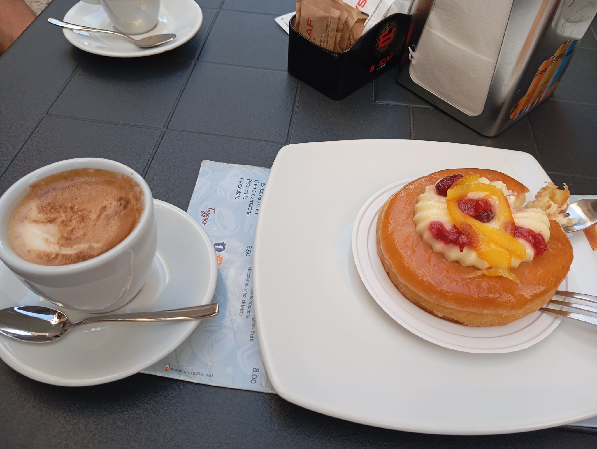Всичко е супер вкусно.Любимо ми стана  кафето еспресиньо, което една дама в самолета ме посъветва да опитам.По нейните думи е типично за Пулия,нещо между макиато и еспресо. Ядох най -вкусния октопод на скара!!!,който ММ си поръча по грешка,защото не си сложи очилата. Той яде някакви морски риби,пържени,според него мешана скара от риби.