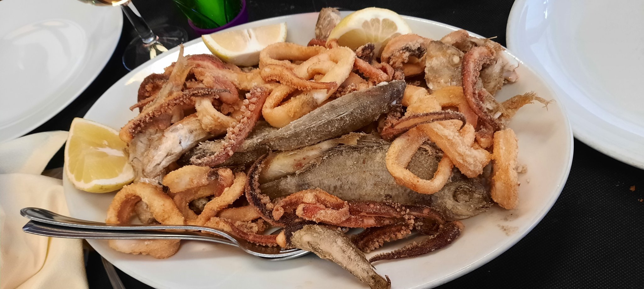 Умирам и аз за морски дарове, по fritto misto не си падам, обаче тази frittura mista както я наричат там трябваше да я опитам, защото...не  била като онази по Адриатическо море 🤣(разбирай с verdure pastellate), а с риба (пресен улов за деня), не че и там няма.