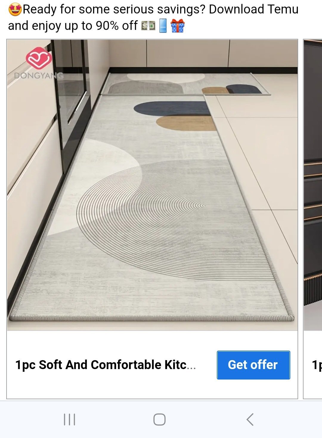При мен пред кухненските шкафове, а и навсякъде, има килими и нищо не се подбива. И аз пържа (панирам по-точно) често, пека на тиган и т.н. обаче чак толкова настрани от плота пръски не виждам, а ако има, са обикновено от страната на големия котлон, който ползвам за такива работи - плотът ми е в края на реда, пред него няма пръски (т.е. където се движа), след такова готвене почиствам и така...И плочки да са, пак трябва да се почисти и ако стъпя върху мазни пръски, разлика няма, даже много повече се пързаля.