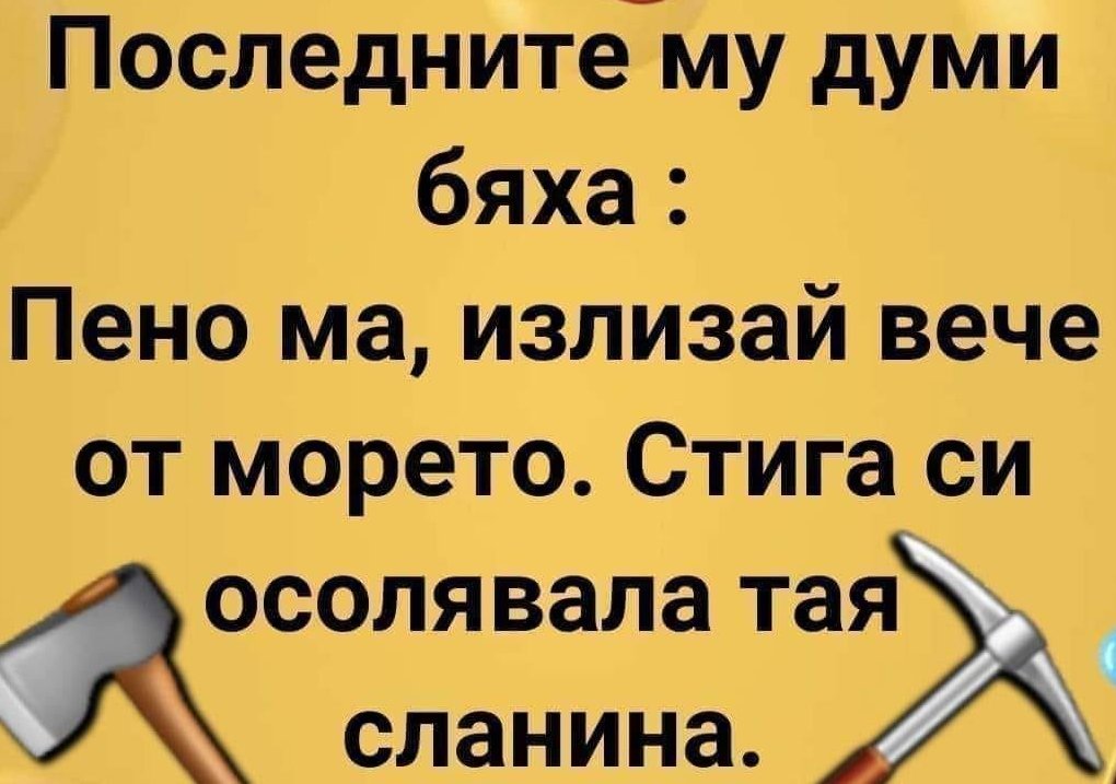 - Ще се убиеш бе, чедо! Защо бързаш толкова? Те нали казаха, че първо ще пият кафе...