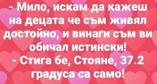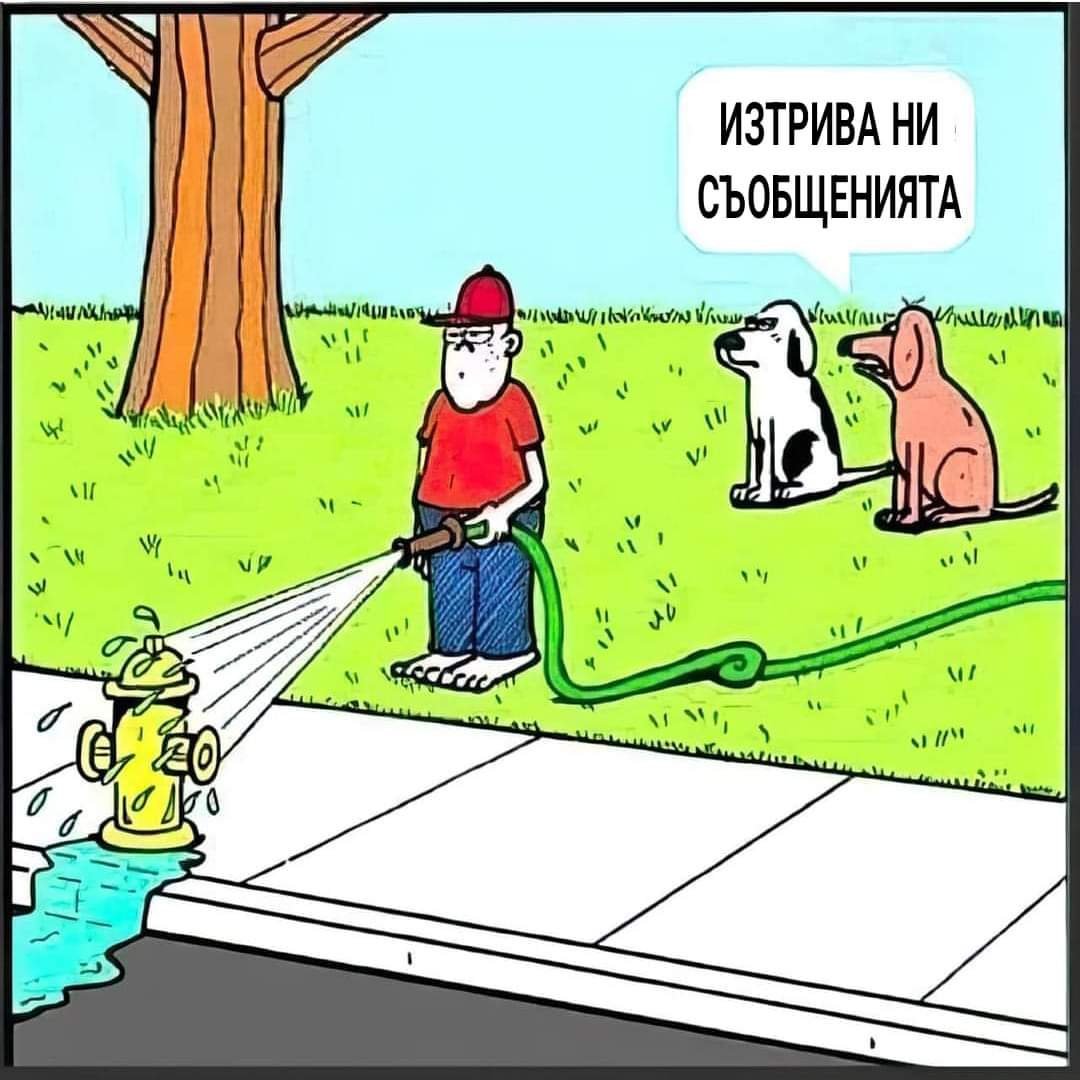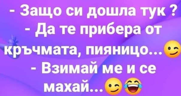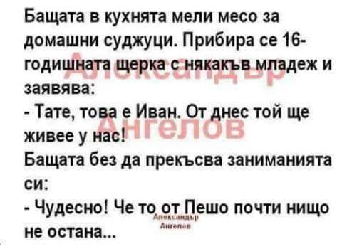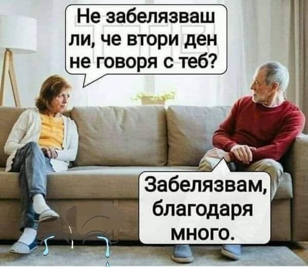 - Абсолютно! Е, аз ще тръгвам вече! Чакай, бе, какво имах да ти казвам... А, да! Между другото - тъща ми се дави!