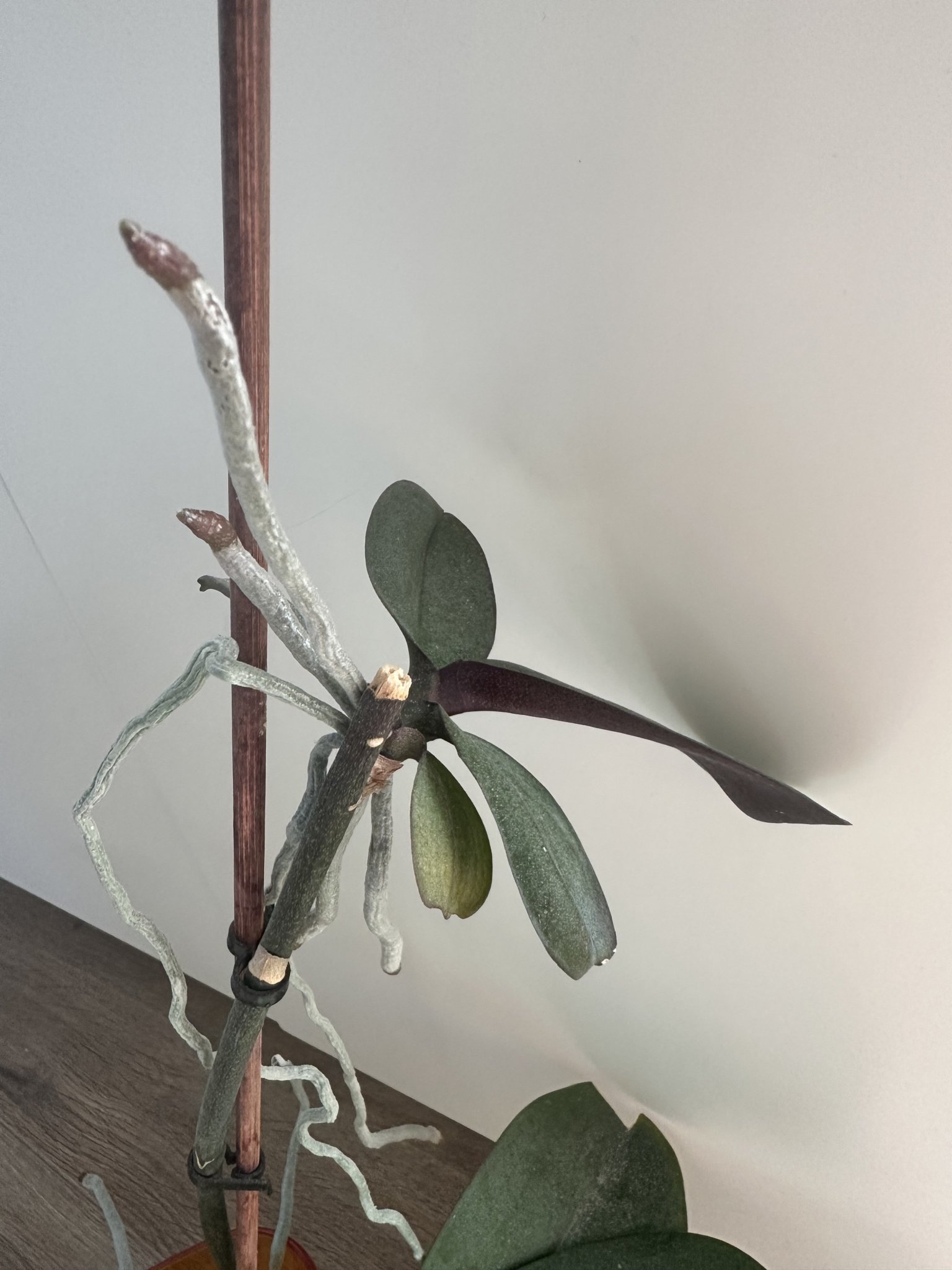 На едната орхидея връхчетата на въздушните корени са потъмнели. Бяха ярко зелени. Сега станали тъмни едни такива.