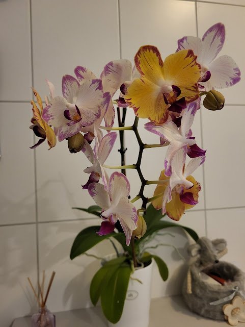 Почти не торя, преди няколко седмици ги полях с разредна тор за цветя. Пожълтяха няколко листа, обаче две от орхидеите са с по 2 цветоноса. Доволна съм. Останалите, които пресаждах по никое време се ослушват още, но са живи. Simple Smile