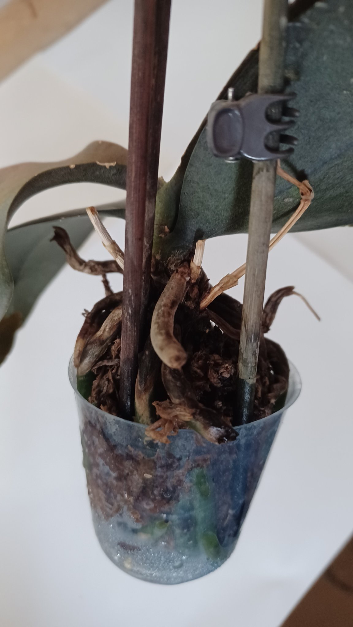 beauty_magnolia, аз бих извадила орхидеята, за да разгледам корените. Освен това ми се струва, че е преполята. Или е преполивана редовно. Моите орхидеи ги поливам от дъжд на вятър и все гледам да не ги мокря много. Поливам ги най-често отгоре, върху мивката и гледам да се отцеди водата.
