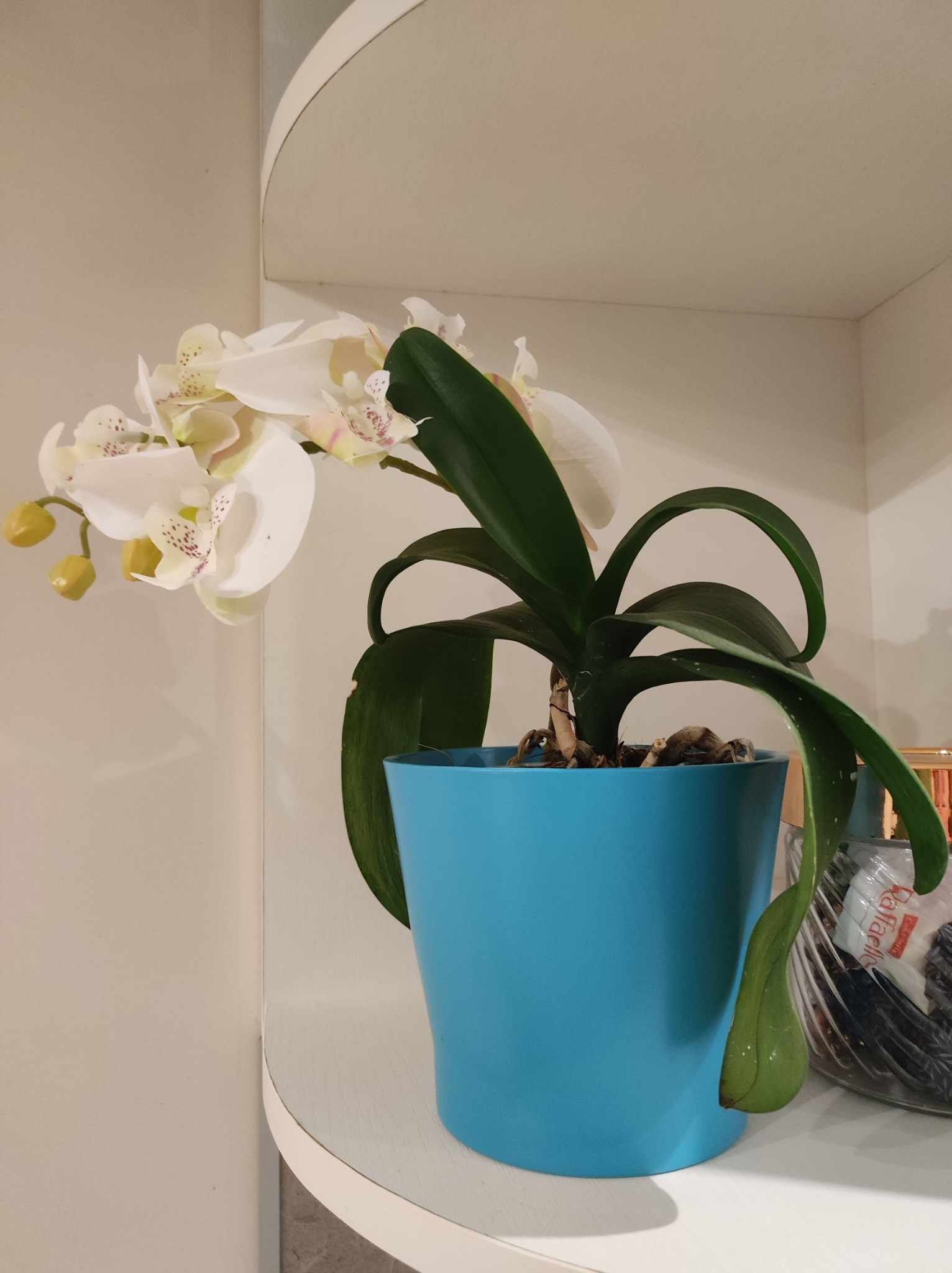 Не е от тора. Орхидеите искат слънце, може и непряка светлина, но да е осветено. Също поливането - на 10 дни накисвайте за няколко часа в леген с вода. Не по-често. Не обичат много поливане
