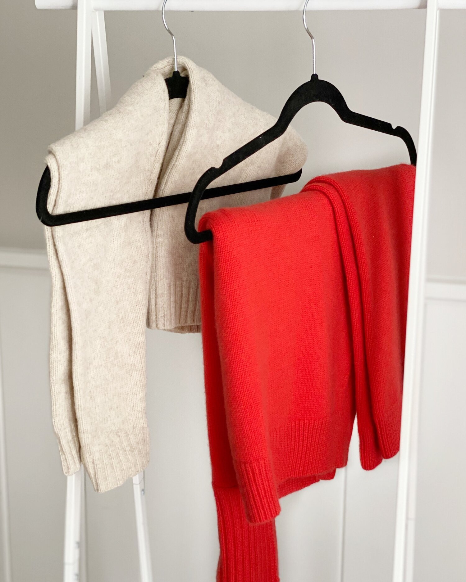 Трикотажни на закачалка се слагат ей така, за да не се деформират раменете. На мен ми е пипкаво и предпочитам да ги сгъна на рафт.